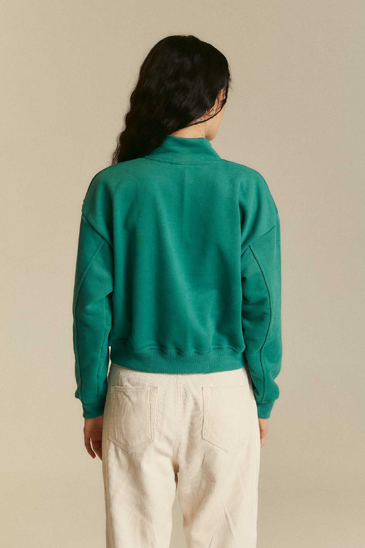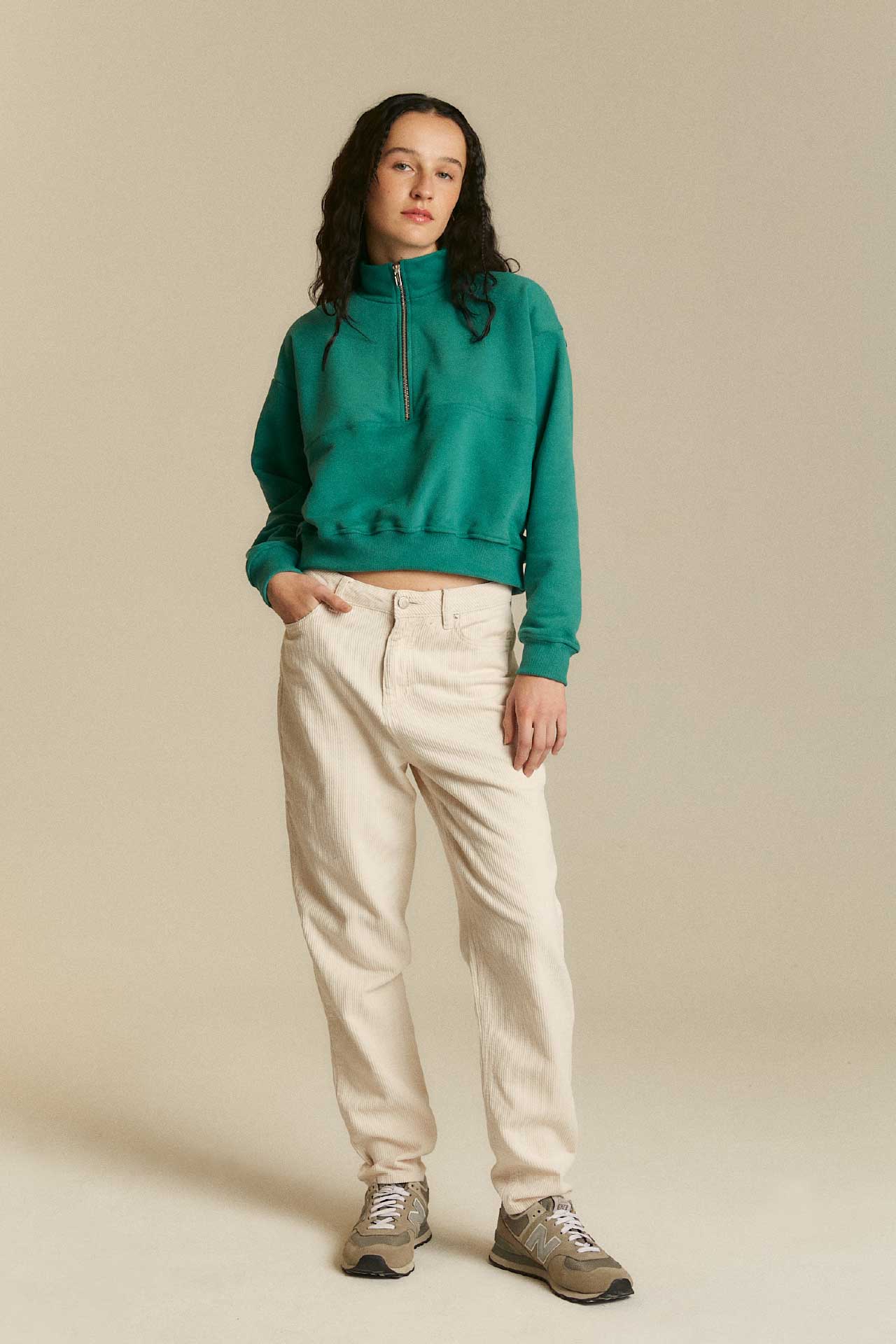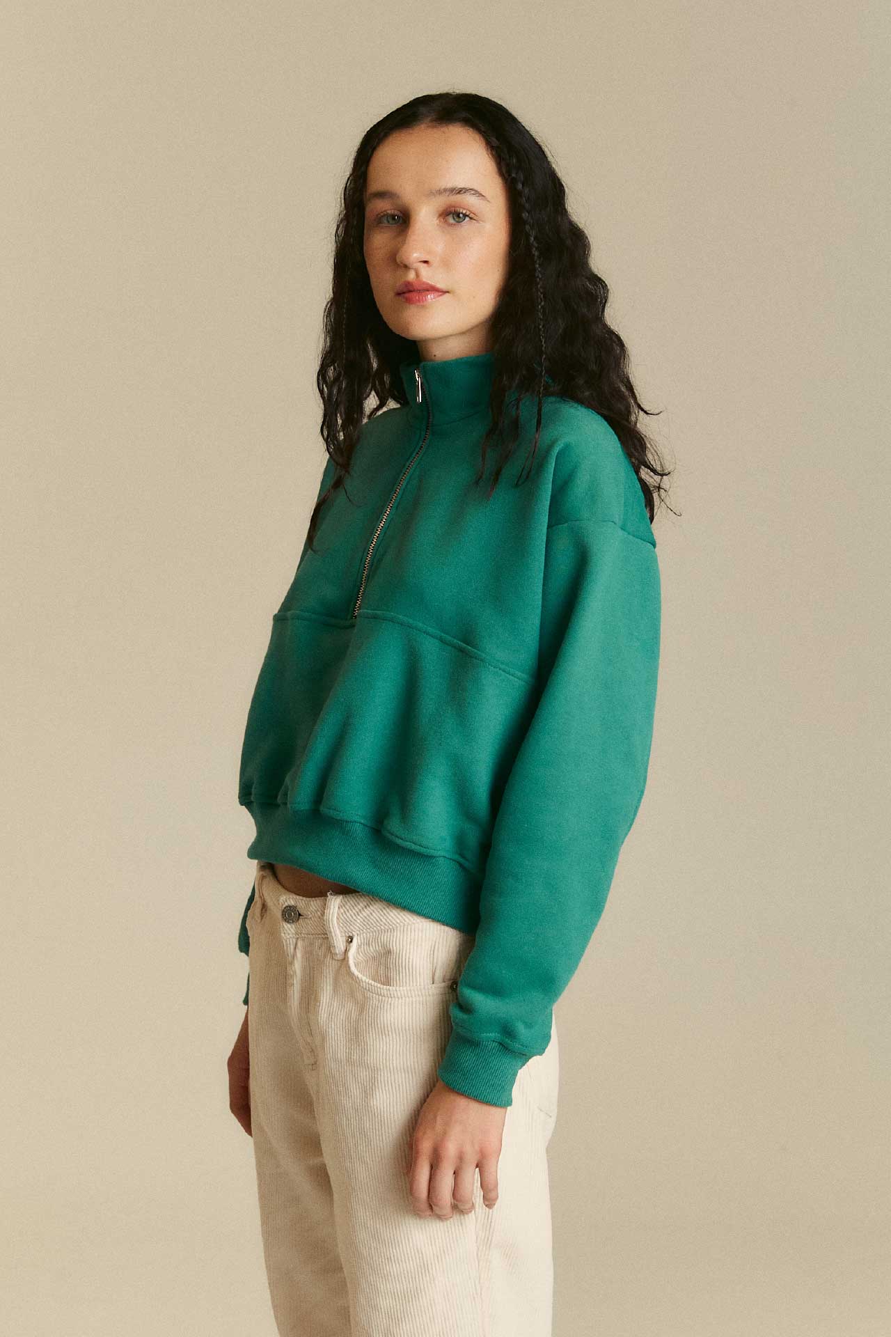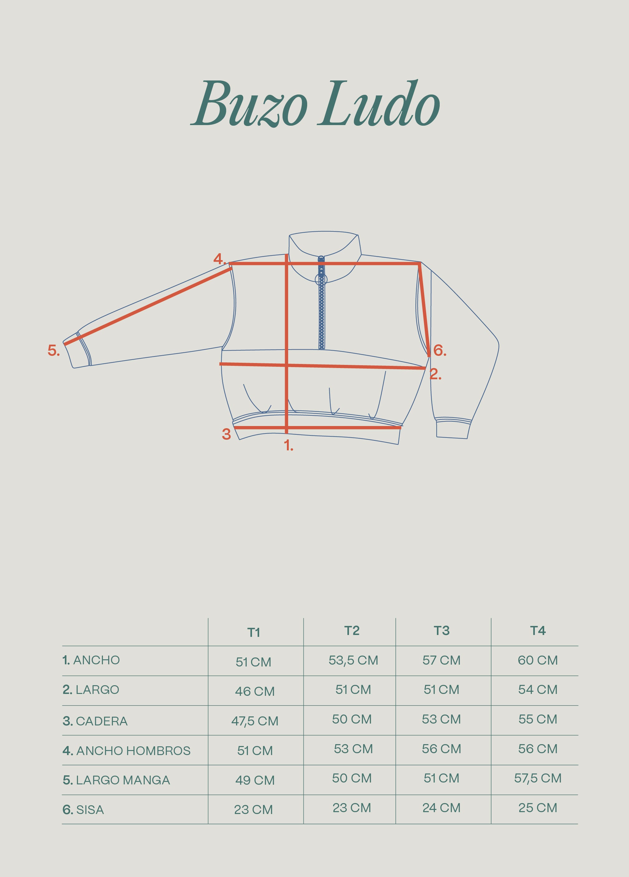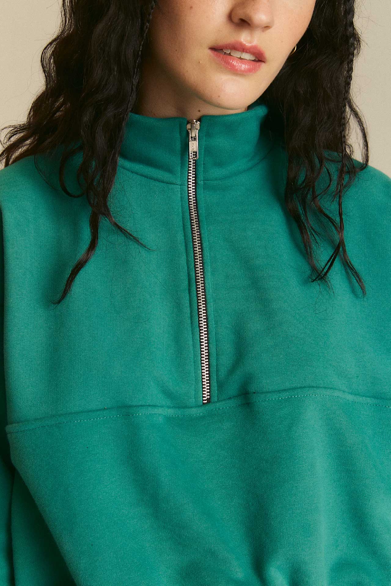 Buzo Crop de rustico de algodon con cierre y polera. Sisa caida.